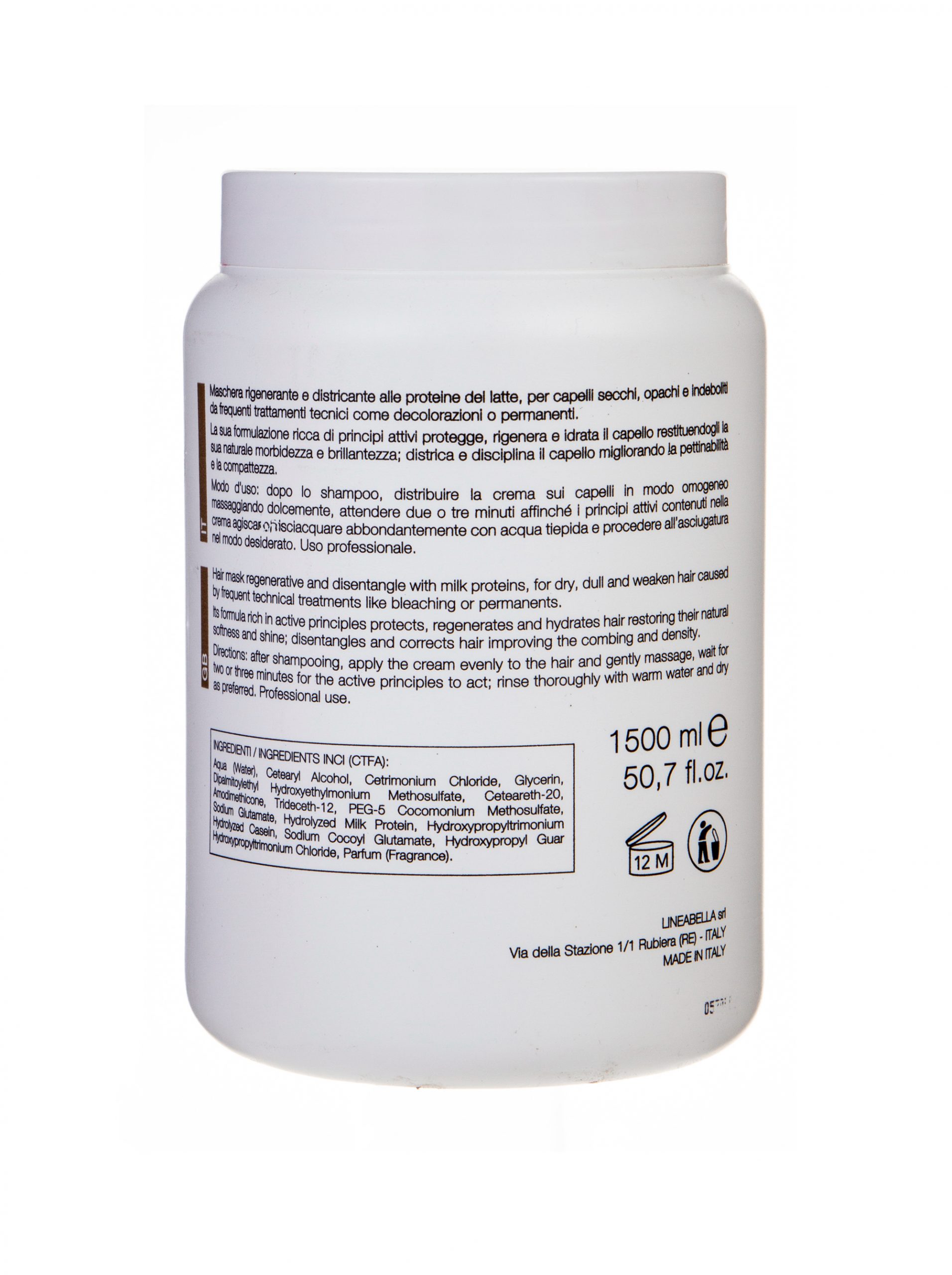 Maschera rigenerante e destricante alle proteine del latte,per capelli ecchi,opachi e indeboliti da frequenti trattamenti tecnici come decolorazioni o permanenti.